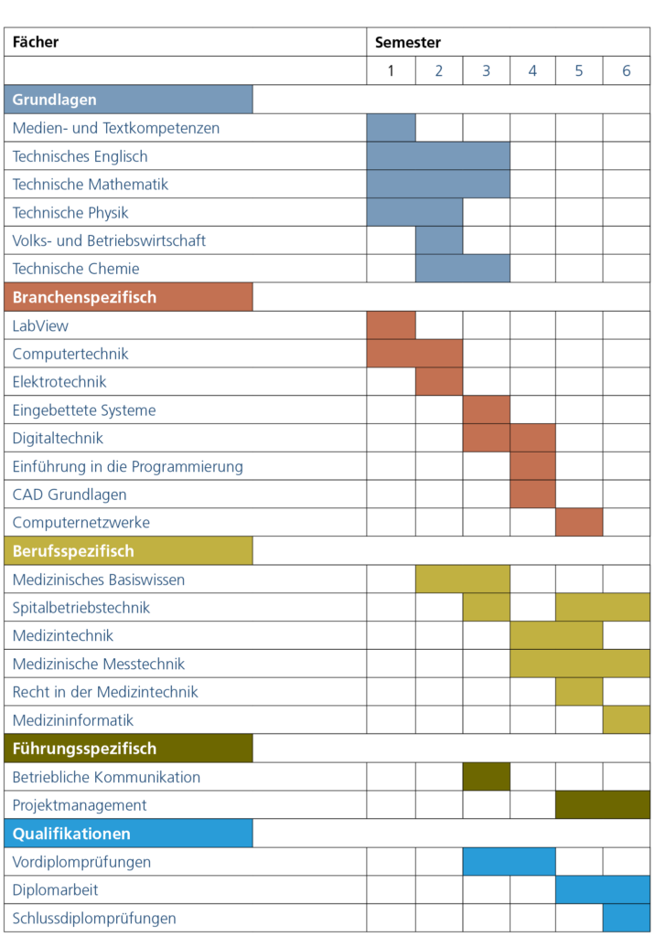 Nach erfolgreichem Abschluss als diplomierte Medizintechniker:in HF an der Höheren Fachschule für Medizintechnik ist der Wechsel zur angegebenen Fachhochschule sichergestellt: